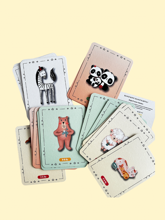 Resimli Bebek bakımı ve etkinlik kartları 0-12 ay